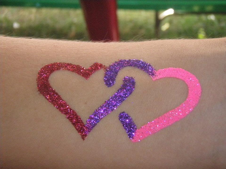 Applied with body glue and cosmetic glitters is perfect for pool parties and night parties. Tattoos stay between 5-7 days depending on care. Use alcohol to remove.